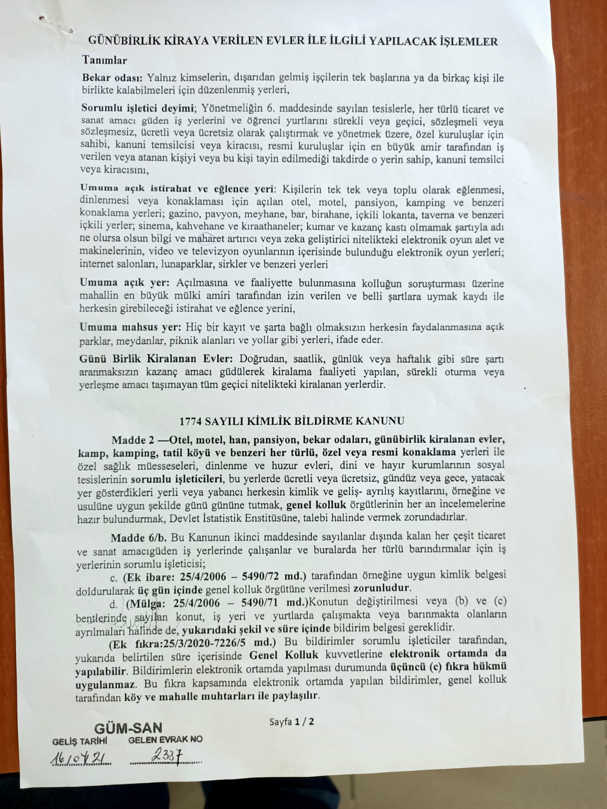 Konutların kiraya verilmesi hakkında alınmış Genel Kurul kararlarının yanı sıra 1774 sayılı Kimlik Bildirme Kanununun aşağıdaki maddelerinin de göz önüne alınması önemle rica olunur.